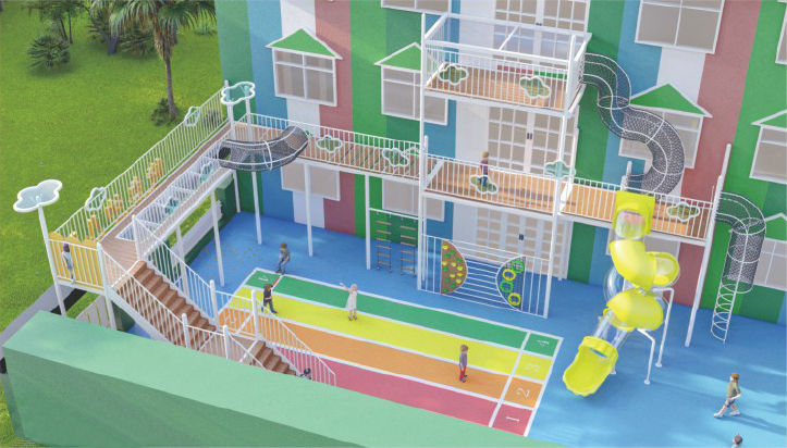 像水一樣流動的外形,蜿蜒數(shù)十米;高低起伏的半空架構(gòu),新穎靈魂的藝術(shù)風(fēng)格,盤旋回繞的資格立交橋設(shè)計(jì),斑斕五色與金屬色的碰撞,讓此項(xiàng)目猶如一幅藝術(shù)作品,回歸自然,超脫于游樂拓展設(shè)備之上,矗立于林立高樓之中。