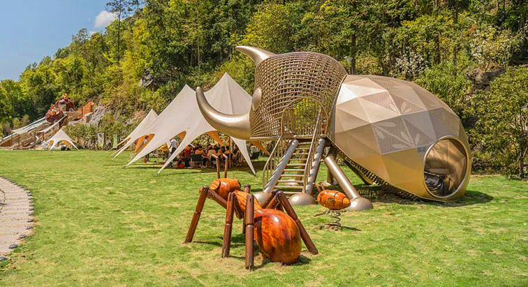 它適合安置在山野營地、親子農(nóng)場(chǎng)、自然樂園等戶外場(chǎng)景,既能讓孩子在模擬昆蟲世界的探險(xiǎn)中釋放活力,也能憑借獨(dú)特的仿生造型成為場(chǎng)地的吸睛打卡點(diǎn)。