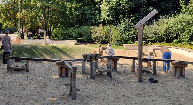 它專為兒童打造:孩子可通過操作杠桿、拉動鏈條等方式與沙坑互動,在嬉玩中鍛煉動手能力與協(xié)作意識,家長也可陪同參與,是親子陪伴的歡樂場。設(shè)備采用防腐原木材質(zhì),耐候性強且維護便捷,適配社區(qū)公園、親子樂園、郊野營地的沙坑場景,既能提升自然游樂的體驗感,也能吸引親子客群到訪,激活戶外空間的活力。