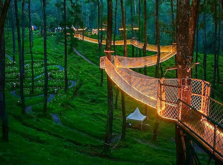 這是一款沉浸式森林主題室外拓展游樂設(shè)備,以天然林木為支撐,打造出蜿蜒穿梭于林間的高空網(wǎng)道與平臺,搭配 LED 燈帶在夜間點亮,營造出夢幻的星芒森林氛圍。主體采用高強度鍍鋅鋼絲網(wǎng)與鋼材框架構(gòu)建,既保障了結(jié)構(gòu)穩(wěn)固與游玩安全,又最大程度保留了森林的自然風貌。設(shè)備集高空行走、林間穿越、夜間打卡于一體,適用于自然景區(qū)、森林營地、研學基地等場景,讓游客在離地的棧道上感受森林的靜謐與壯闊,同時鍛煉平衡感、勇氣與探索精神,是白天親近自然、夜晚邂逅星光的理想游樂選擇。