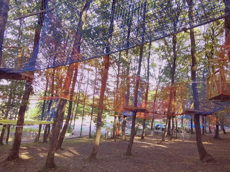 這是一款沉浸式森林主題室外拓展游樂設(shè)備,以天然林木為支撐,構(gòu)建出多層交錯的彩色網(wǎng)道與木質(zhì)平臺,讓游客在林間高空穿梭。主體采用高強度尼龍防護網(wǎng)與防腐實木打造,搭配金屬連接件固定,既保障了結(jié)構(gòu)穩(wěn)固與游玩安全,又最大程度保留了森林的自然風(fēng)貌。設(shè)備集高空行走、網(wǎng)陣攀爬、林間穿越于一體,適用于自然景區(qū)、森林營地、研學(xué)基地等場景,讓挑戰(zhàn)者在彩色網(wǎng)道中鍛煉平衡感、勇氣與探索精神,沉浸式感受森林探險的樂趣。