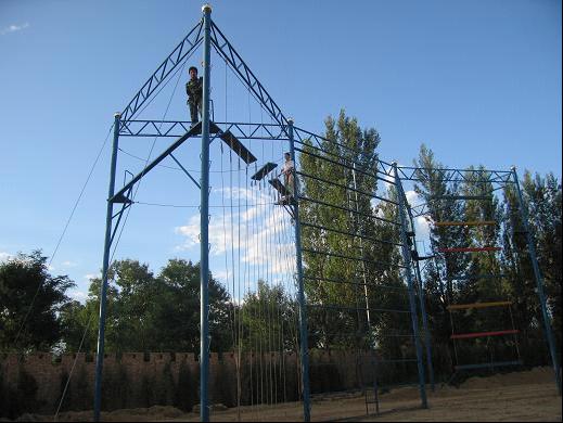 本套拓展器材從心理學角度入手,從天梯之間的距離、器械總體高度等方面都做了非常嚴密的設計,使其更加符合人的心理規(guī)律;從器械學角度來看,該設備做了組合型設計,減少了占地面積;