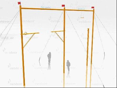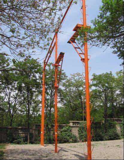 本套拓展器材從心理學(xué)角度入手,從天梯之間的距離、器械總體高度等方面都做了非常嚴(yán)密的設(shè)計,使其更加符合人的心理規(guī)律;從器械學(xué)角度來看,該設(shè)備做了組合型設(shè)計,減少了占地面積;