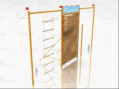 本套拓展器材從心理學(xué)角度入手,從天梯之間的距離、器械總體高度等方面都做了非常嚴(yán)密的設(shè)計(jì),使其更加符合人的心理規(guī)律;從器械學(xué)角度來看,該設(shè)備做了組合型設(shè)計(jì),減少了占地面積;