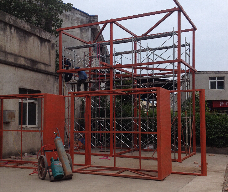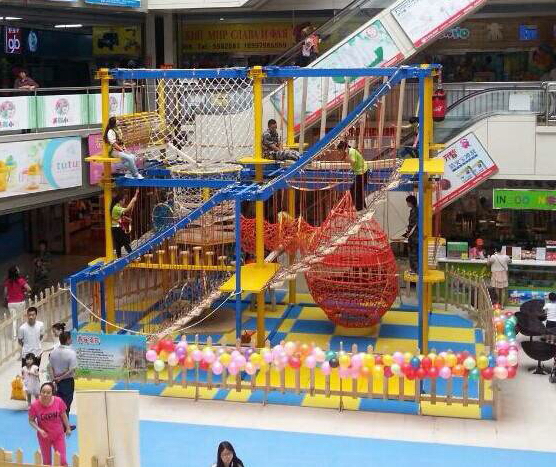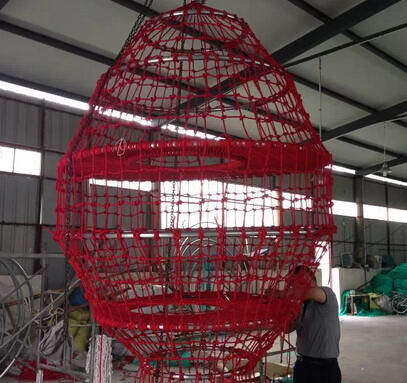 正在制作中的兒童拓展樂園設施吊網(wǎng)籠